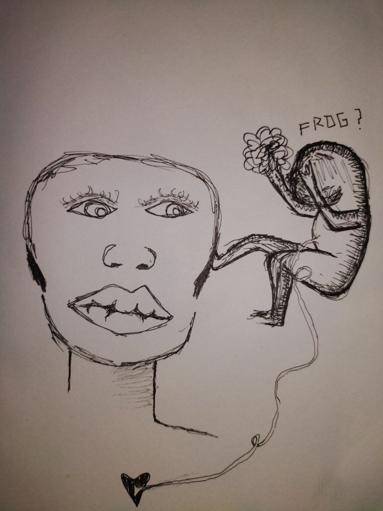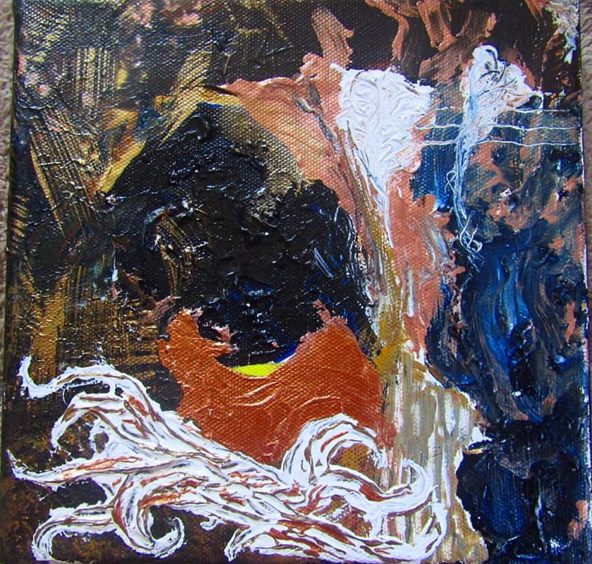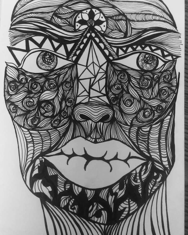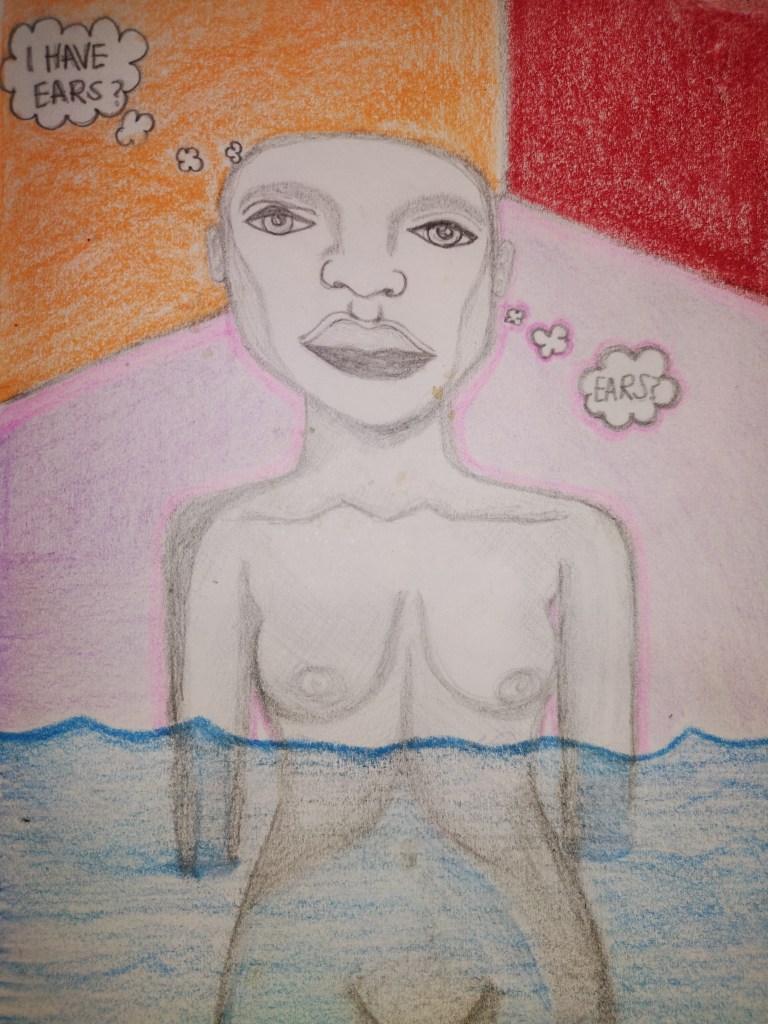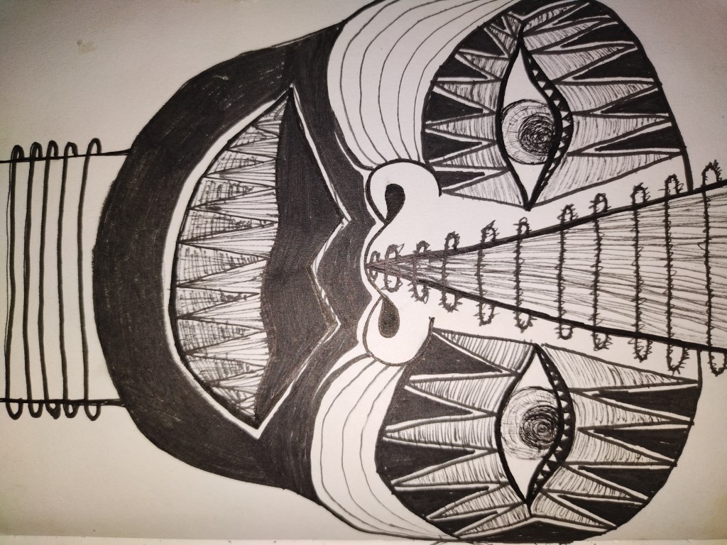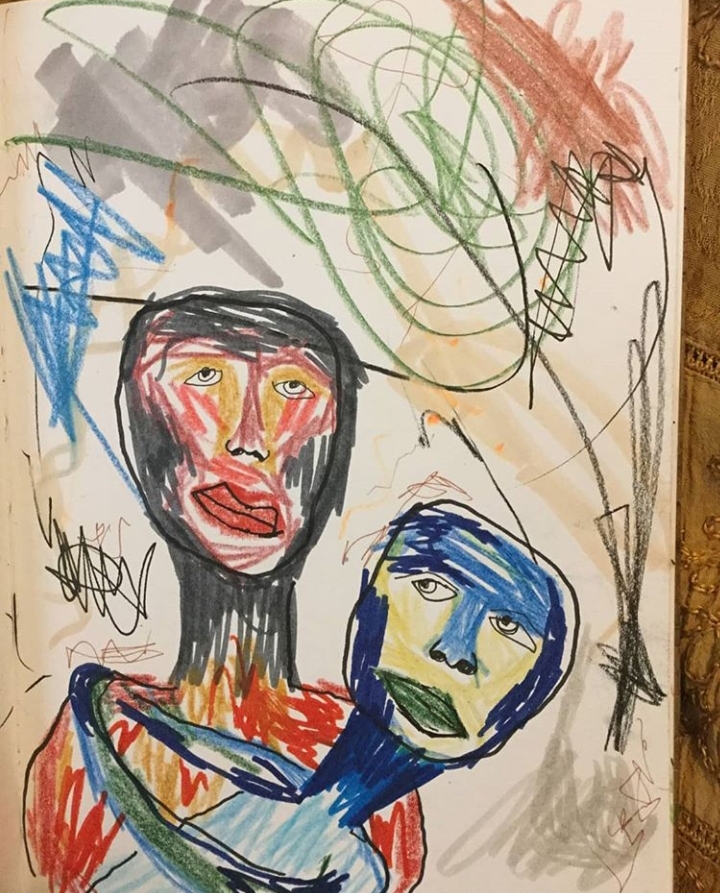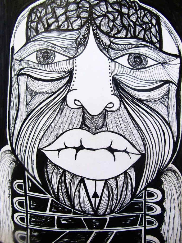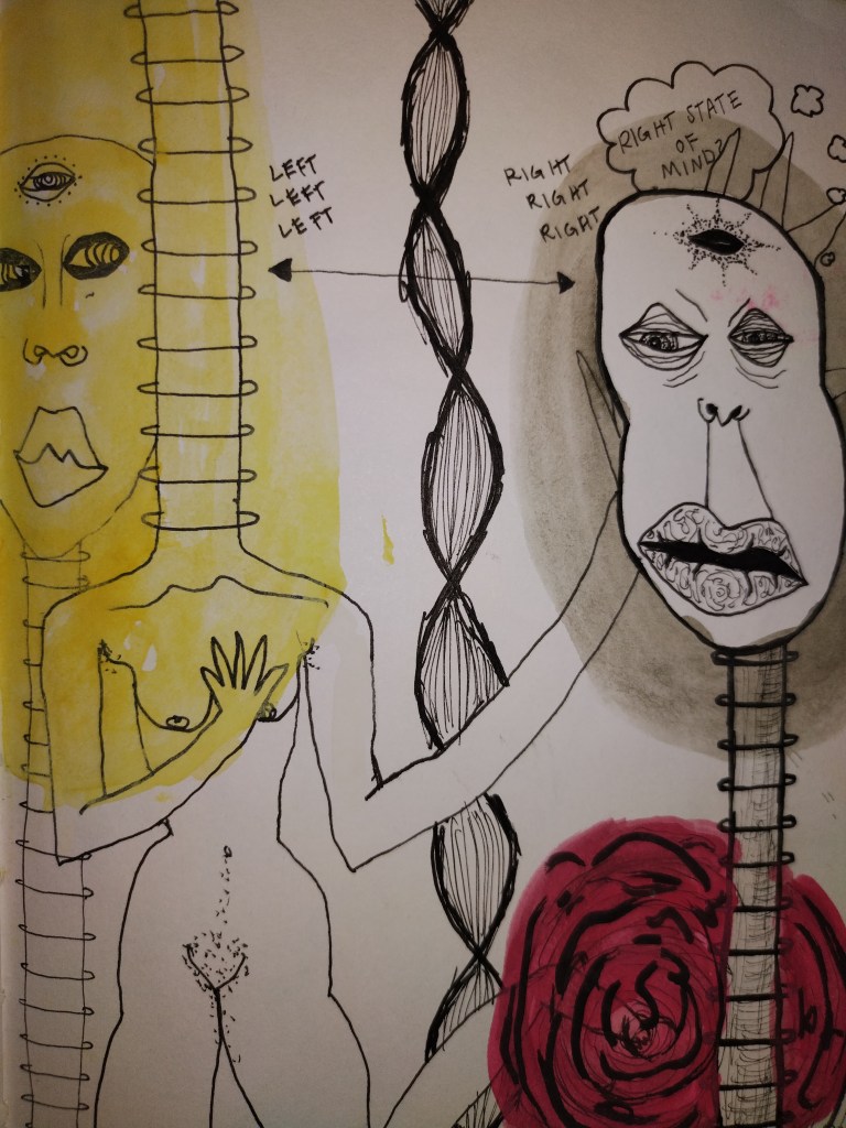 In her ink and paint work, the eyes are always born first, anchoring the piece like soul-beacons or watchers. From there, she steps aside and allows figures, fragments, and forgotten memories to emerge. There is no premeditation. Only presence.