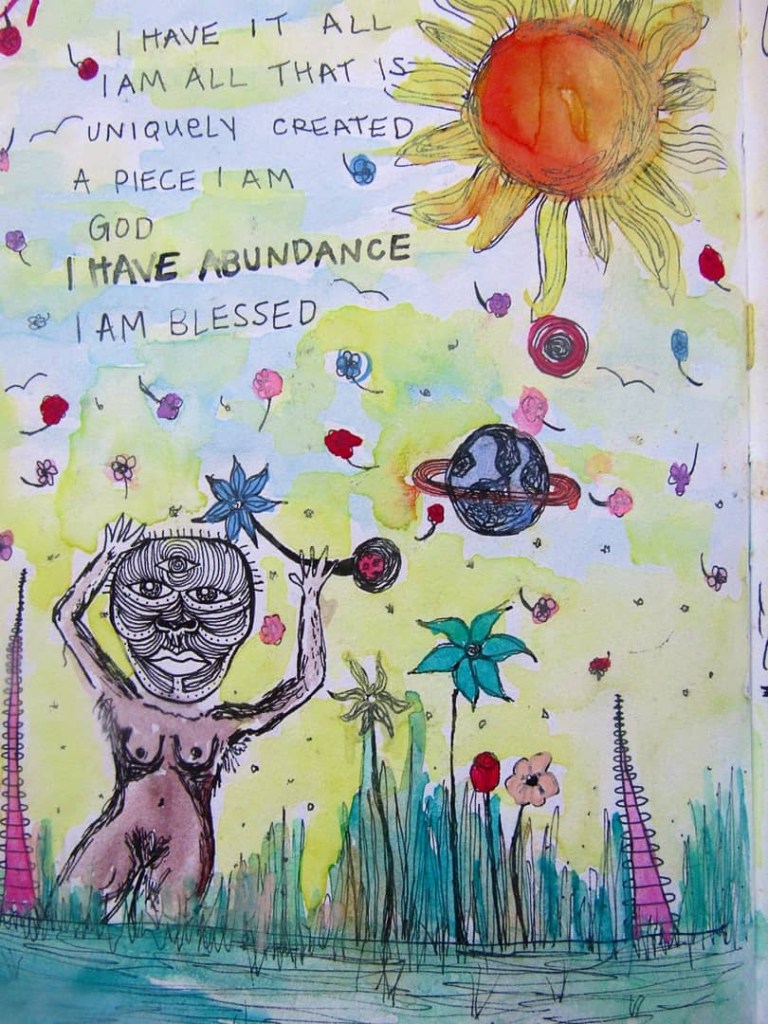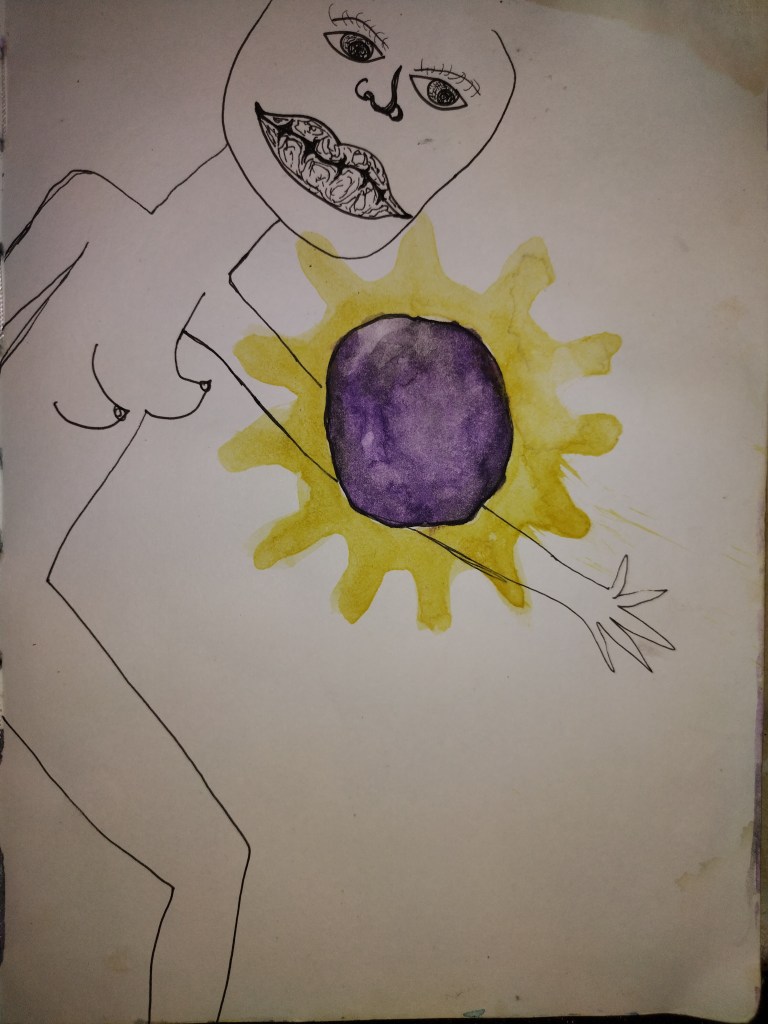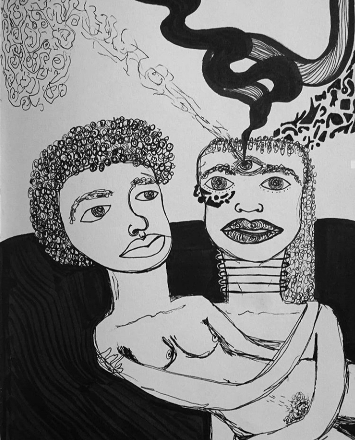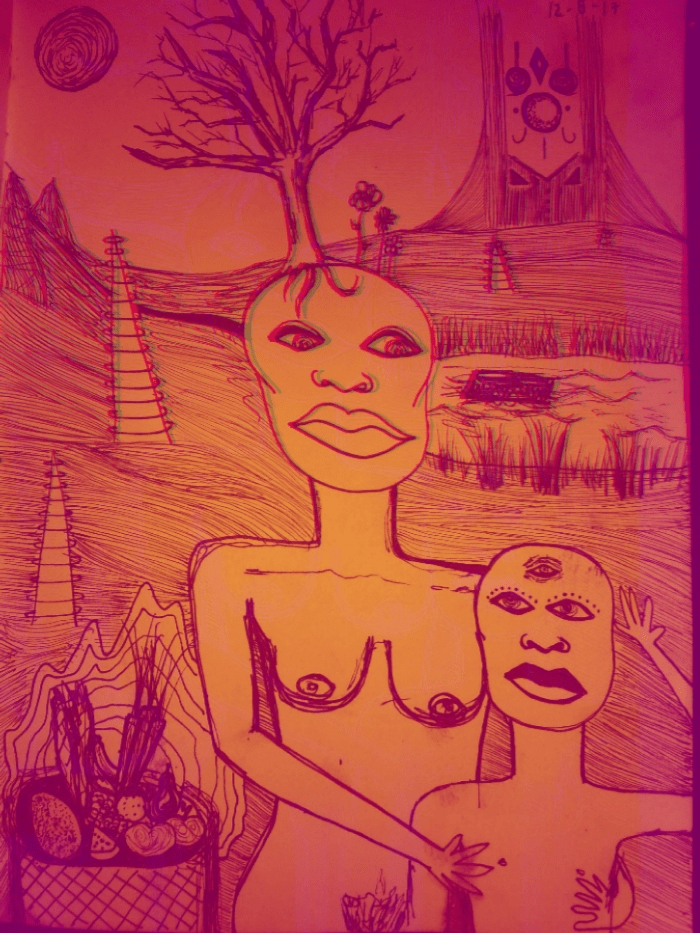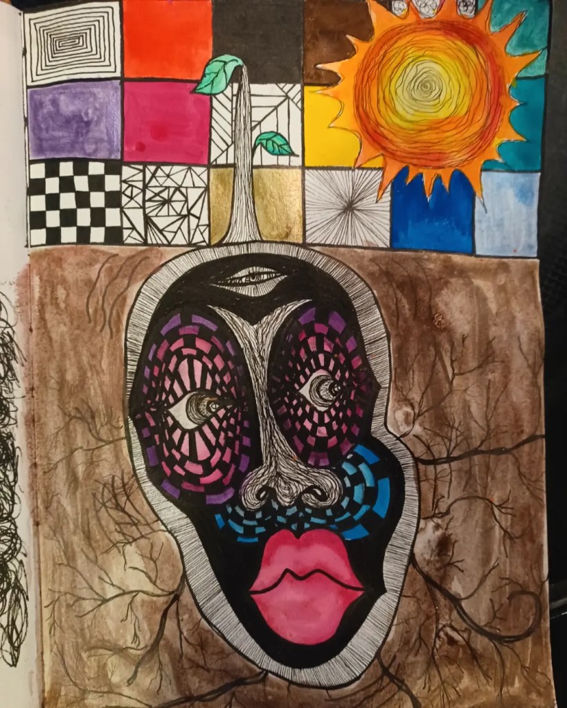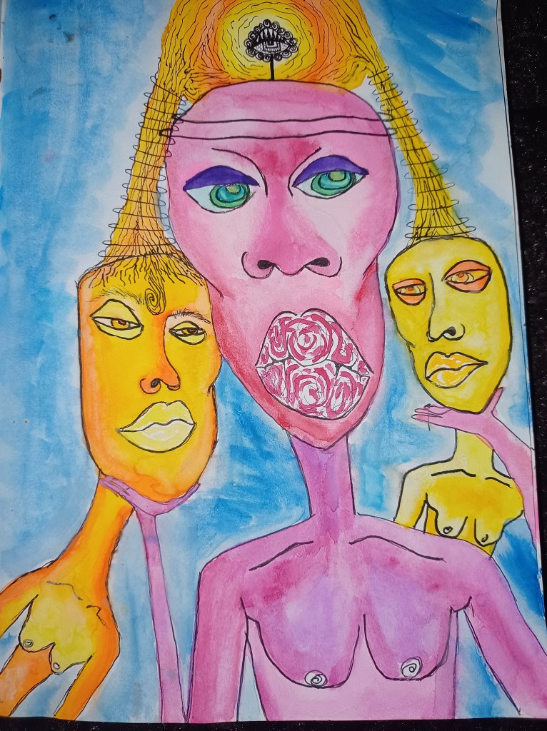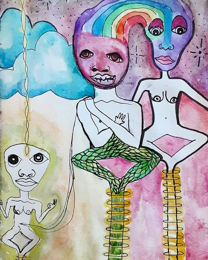 Freegrandmaa is an intuitive artist guided by the unseen. Her creative process is raw and unfiltered, favoring freeflow and non-dominant hand techniques to bypass logic and open portals from the subconscious. She works primarily with ink, watercolor, photography, and recycled materials โ mediums that hold texture, memory, and story.