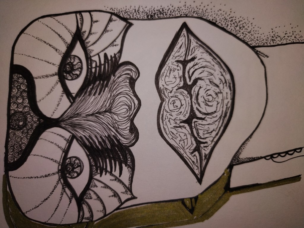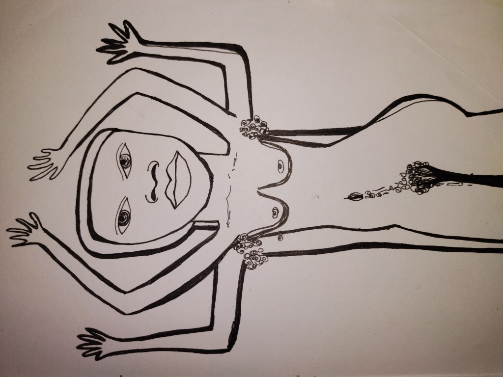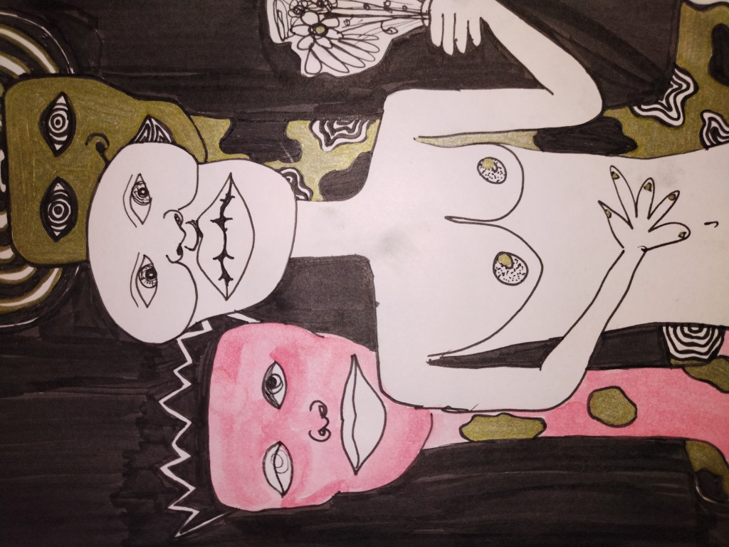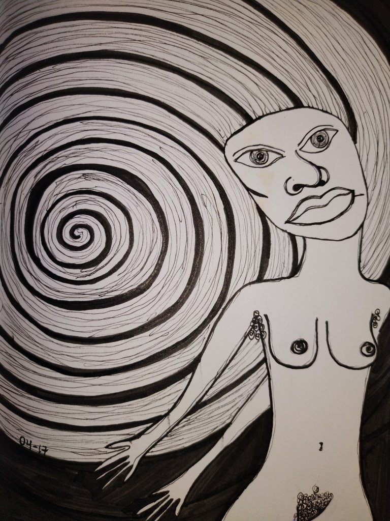 Her visual language merges the mythic and the mundane, the erotic and the ancestral. Spirals, symbols, and distorted forms arise instinctively โ never perfected, always true. Imperfection is welcomed as sacred. It is truth. It is life.