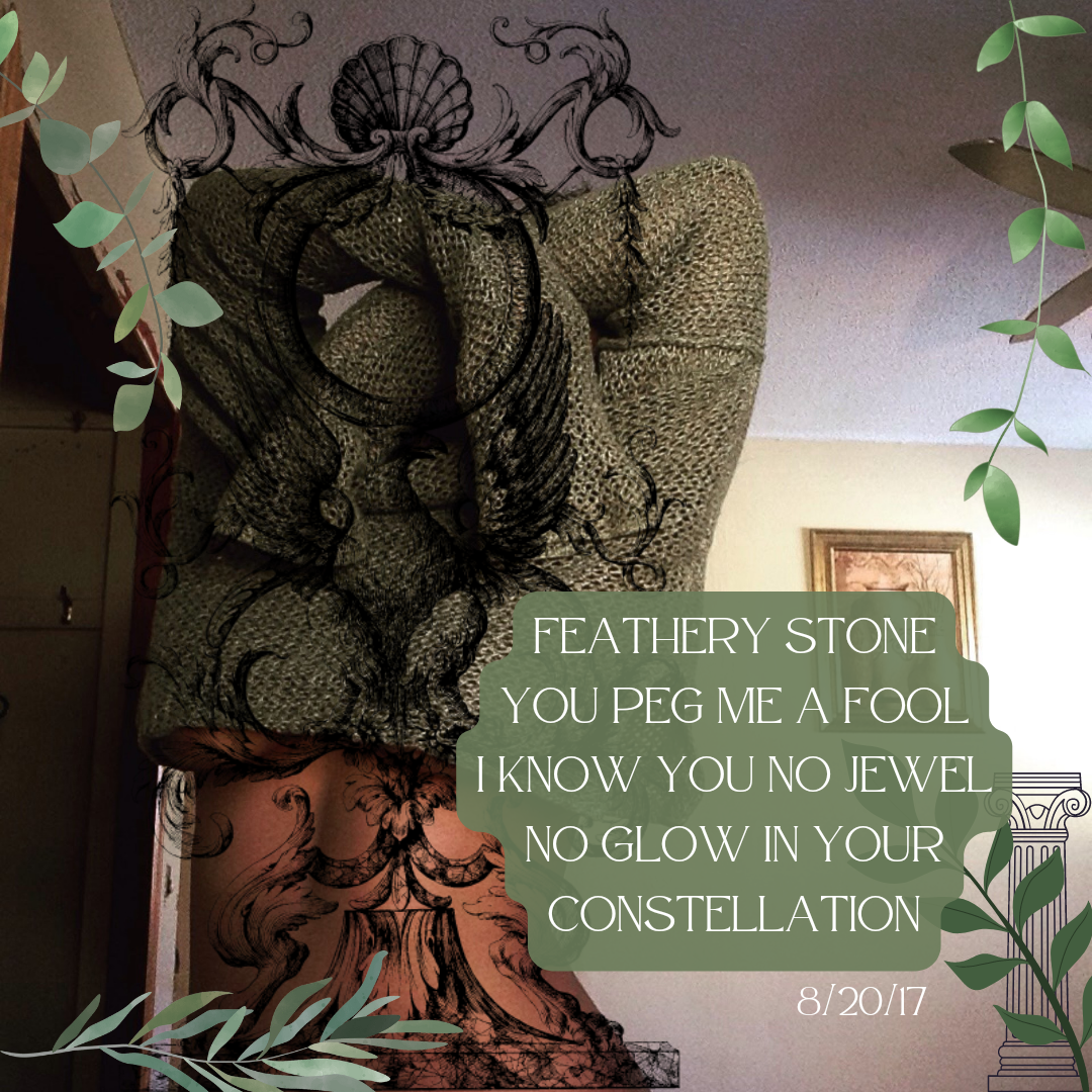 I need a soul to look at. No stimulation stems from rocks. I enjoy my shadows. We dance together in dead streets. We like to hold hands and create tornadoes. In the hands of relation and this chaotic lifeless shapeless home.